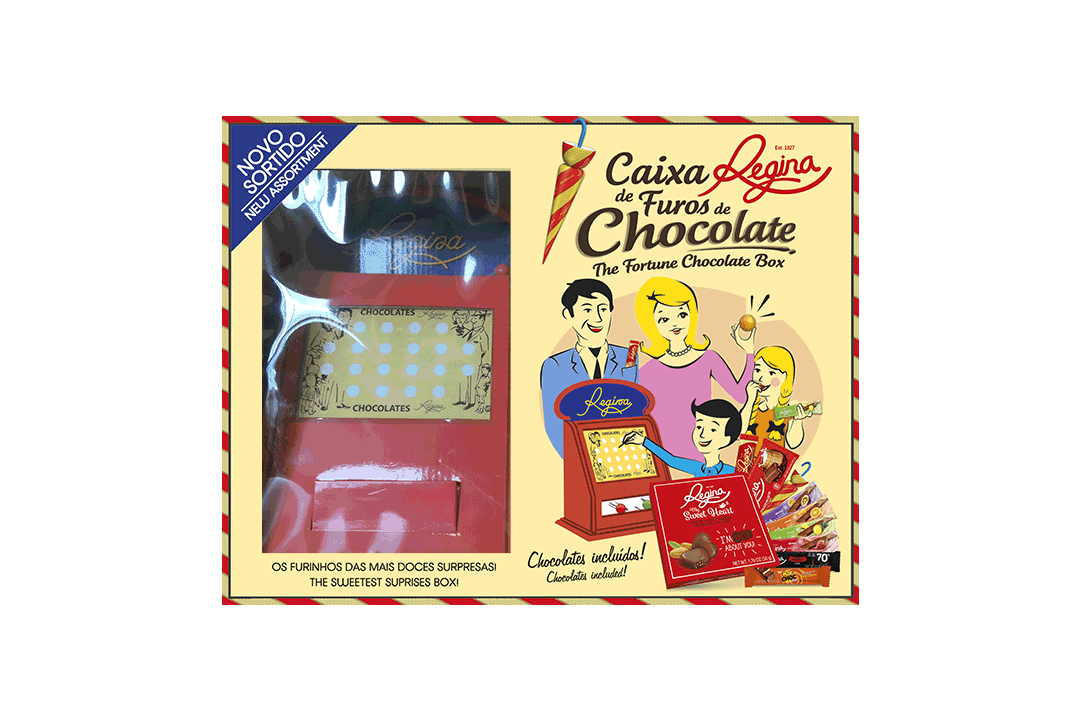 Foram redesenhadas ilustrações e elementos inspirados nas originais Máquinas de Furos Regina para a ajudar a recriar um universo facilmente reconhecido pelos saudosistas desta famosa máquina da sorte. Foi também desenvolvido material de ponto de venda e de comunicação para eventos e cafés.